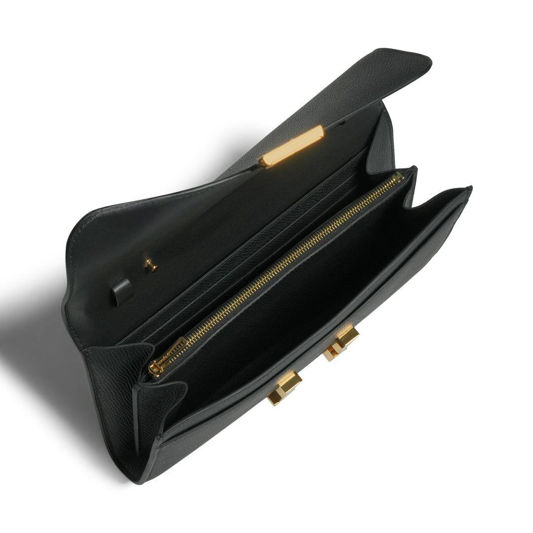 Constance To Go Wallet Epsom Noir . Made from black Epsom leather with a gold “H” clasp, this Constance To Go offers versatile carry with its strap and organized compartments for everyday essentials.