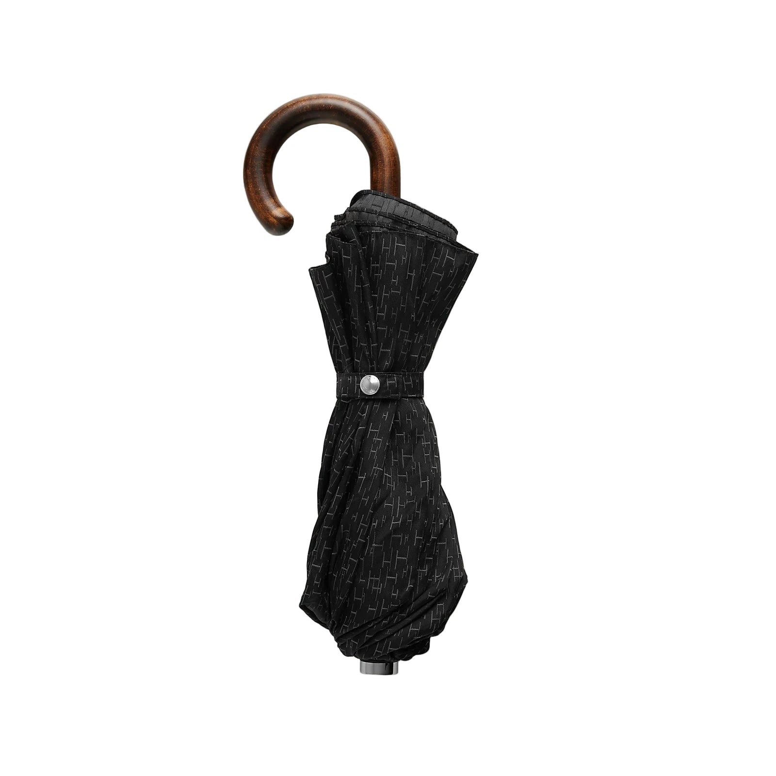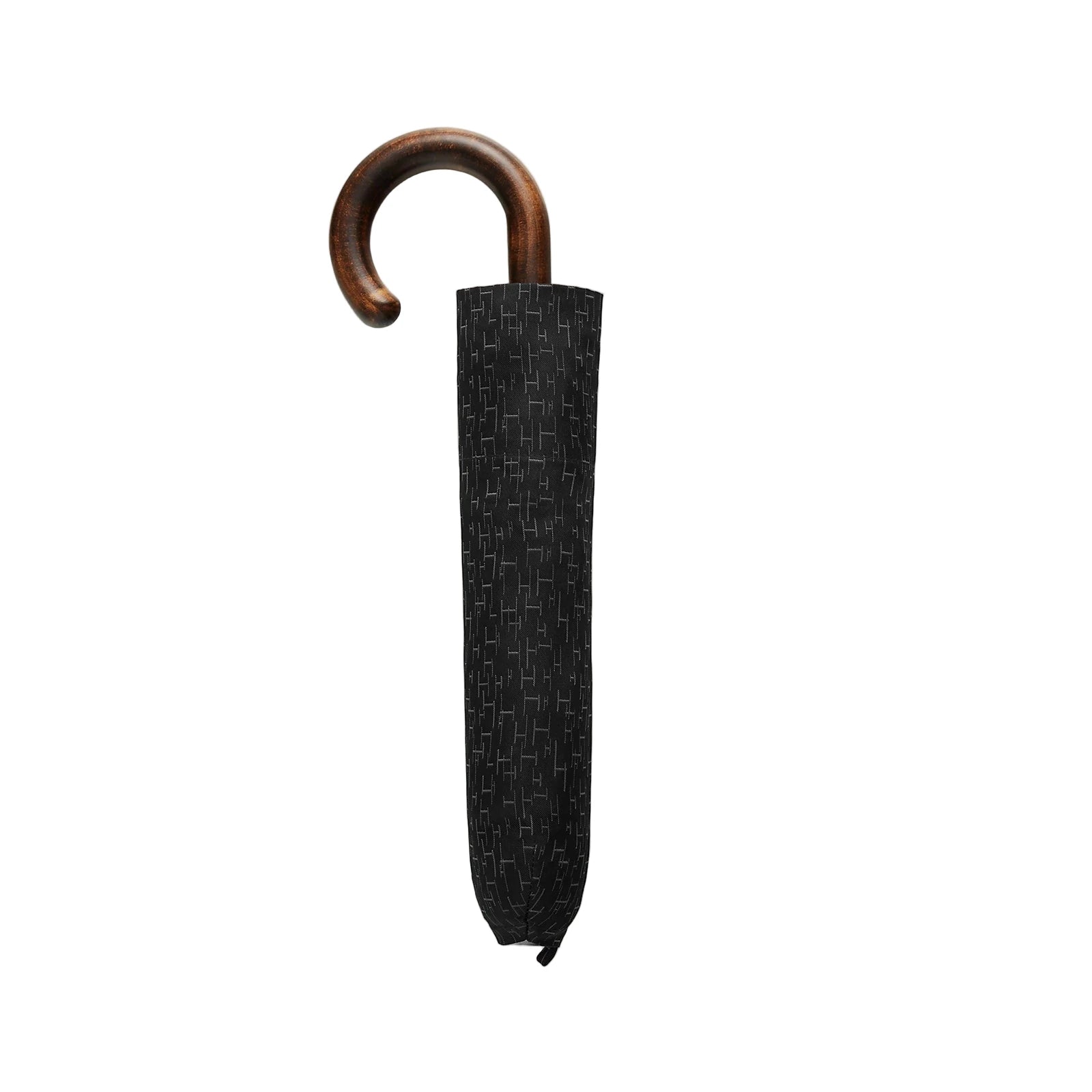 Folding umbrella in jacquard canvas, crafted from 100% polyester and featuring a tinted maple wood handle. Made in Italy, it measures 90 cm in height with a 94 cm diameter when open.
