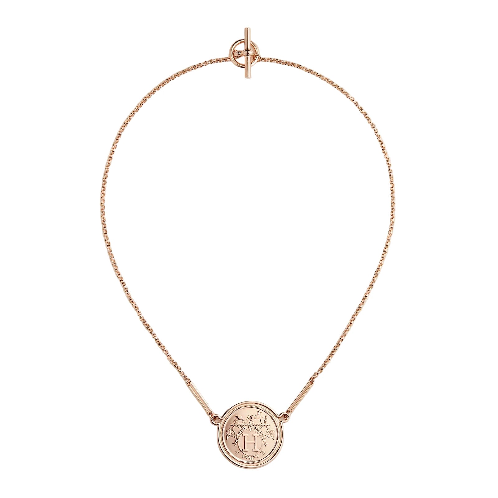 Hermès 18K Rose Gold Ex-Libris Pendant, Very Large Model Bracelet
