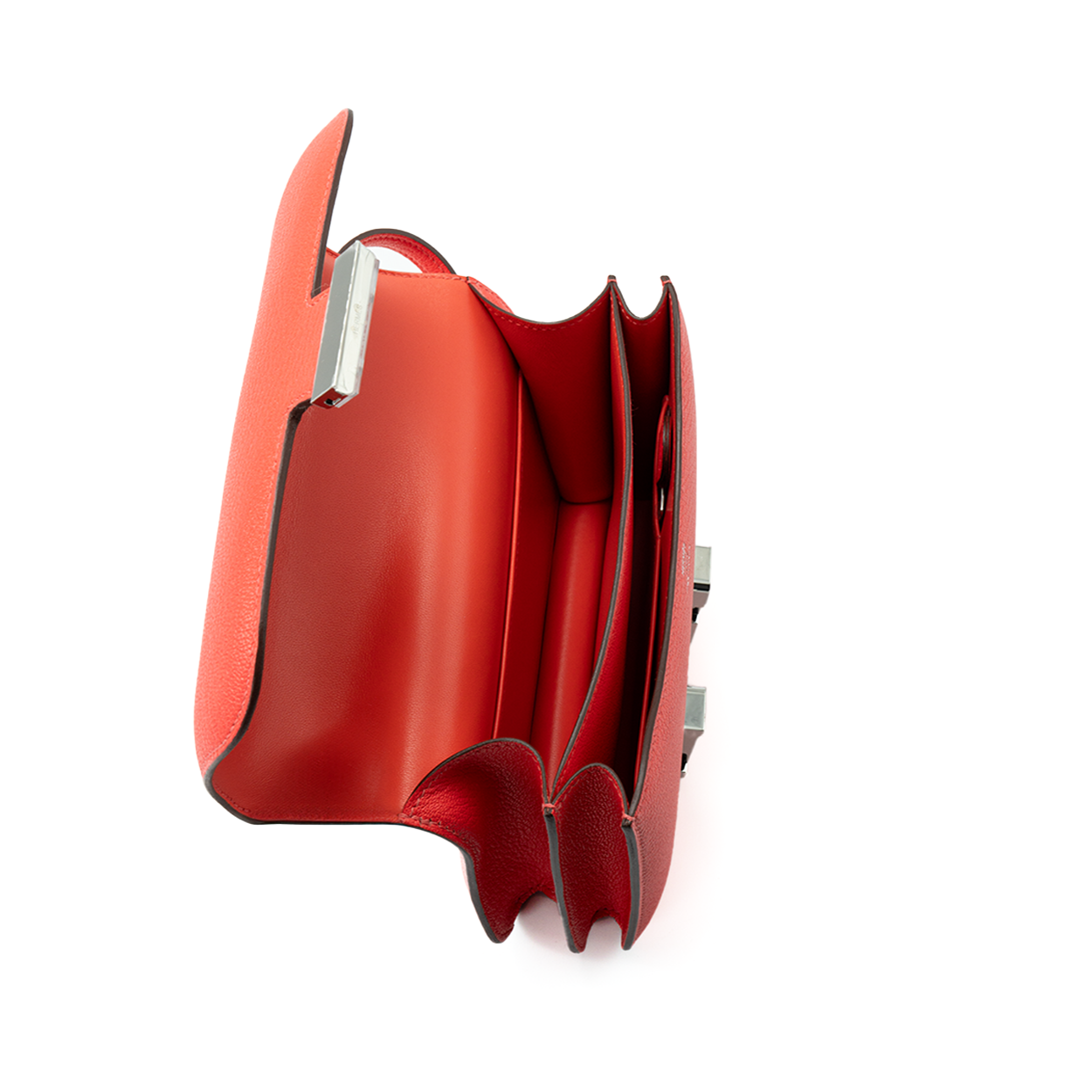 This exquisite Constance 18 Mini is crafted from luxurious Chèvre Mysore leather in the vibrant Rose Texas shade. The design is defined by the iconic palladium-plated “H” clasp, adding a touch of timeless sophistication. Completed with a sleek shoulder strap, it offers versatile styling options for both day and evening wear. Year : 2024.