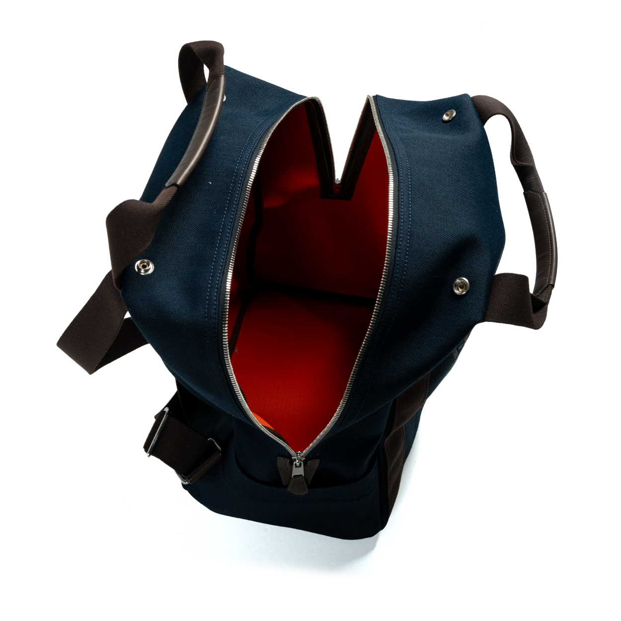 The Groom Backpack in Toile H Bleu Navy and Feu is a sophisticated and functional bag crafted from premium navy cotton. Featuring a top closure with two “Hermès Sellier” engraved Clou de Selle snaps and a zipper, it includes an exterior back pocket, two side pockets, and an interior compartment for ample storage. Adjustable ergonomic straps allow versatile carry by hand or on the back.
