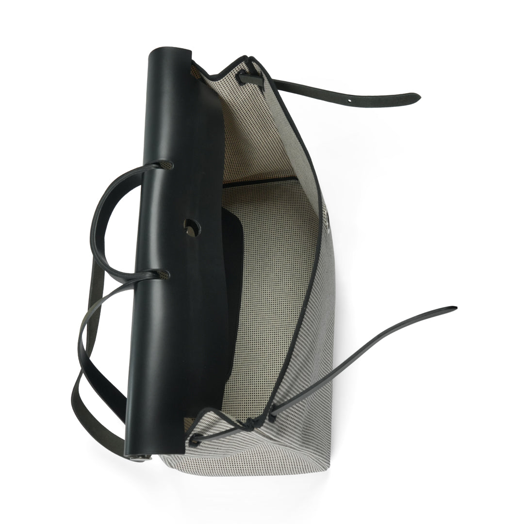The Herbag 50 Zip Cabine Quadrille Viking in Toile H and Vache Hunter Noir is a refined travel companion crafted from durable Quadrille canvas and smooth black cowhide leather. Designed with leather handles, a structured top frame, and an exterior zip pocket for added convenience, it also includes a long leather strap for versatile carrying, blending elegance with practical functionality.
