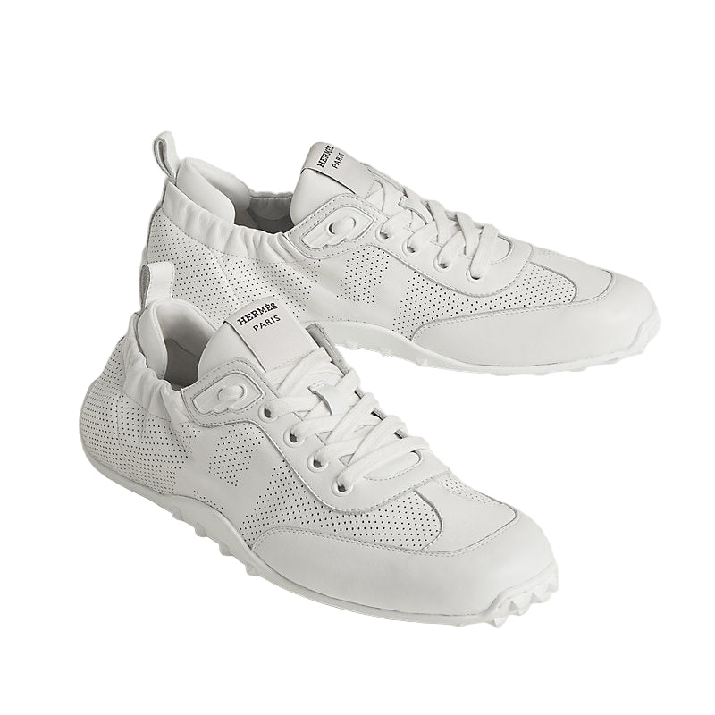 The Hermès Sneaker In – Blanc is crafted in perforated supple calfskin with a sole featuring the iconic Medor studs for a comfortable, casual look. It comes with a second pair of shoelaces for added versatility and style.